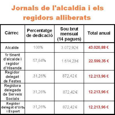 plens anteriors que l’Ajuntament fera públic els sous dels regidors en el llibret de festes o en alguna publicació oficial. Passat el temps, i vist que no es feia, hem decidit que calia fer públiques unes xifres que ja ho eren perquè apareixien en el pressupost d’enguany, que és un document al qual té accés tot el món.